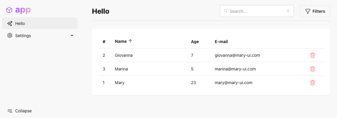 You have a basic working example, but the data is hardcoded. Let's make it work with a real database and add some new models and relationships.